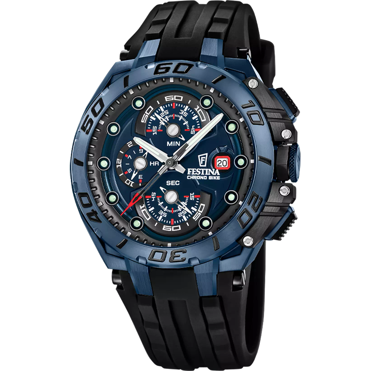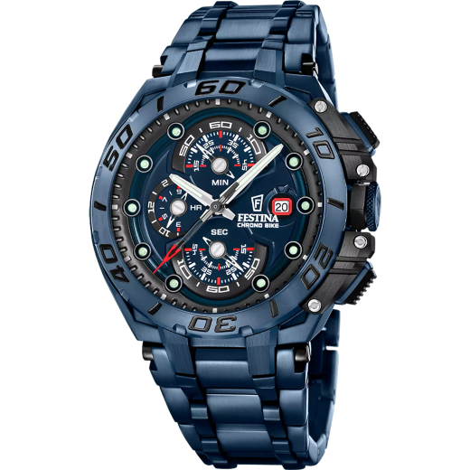 Reloj Festina Hombre F20757/1 Acero Azul Analógico. Caja de acero azul de 46mm de diámetro. Bisel azul. Brazalete de acero azul. Incluye correa de silicón negro intercambiable mas herramienta para hacerlo. Cierre desplegable. Esfera azul. Multifunción, calendario y subesferas con fecha y días. Cristal zafiro. Movimiento quartz. Sumergible 200m.. 3 años de garantía. Ref F20757/1