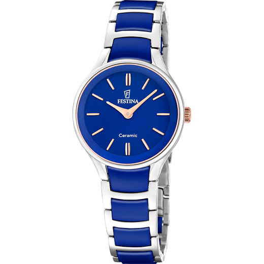 Reloj Festina Mujer F20752/5 Cerámica Blanco Bicolor Azul Analógico