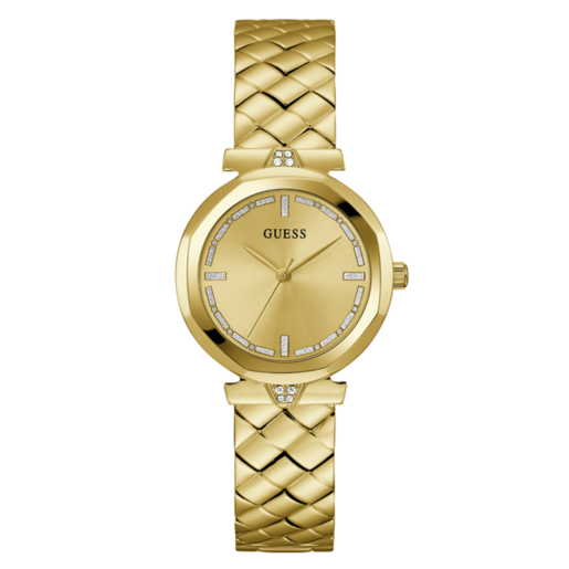 Reloj Guess Mujer GW0613L2 Acero Dorado Analógico. Caja de acero dorado de 34mm de diámetro. Bisel dorado. Brazalete de acero inoxidable dorado. Cierre desplegable. Esfera dorada. Cristal mineral. Movimiento quartz. Sumergible 30m. 3 años de garantía. Ref GW0613L2