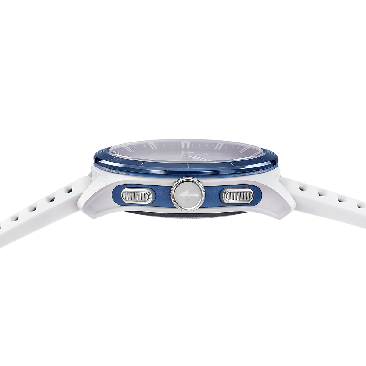 Reloj Lotus Hombre 20001/1 Connected Sport Blanco. Caja de plástico blanco de 45mm de diámetro. Bisel azul. Correa de silicón blanco. Cierre hebilla. Multifunción, Frecuencia cardíaca, GPS, Historial entrenamiento, monitorización de sueño, condición física (VO2max), estrés, hora mundial, temporizador, cronómetro, alarma, clima, encontrar teléfono, control música, notificaciones. Cristal mineral. Movimiento quartz. Sumergible 50m. 3 años de garantía. Ref 20001/1