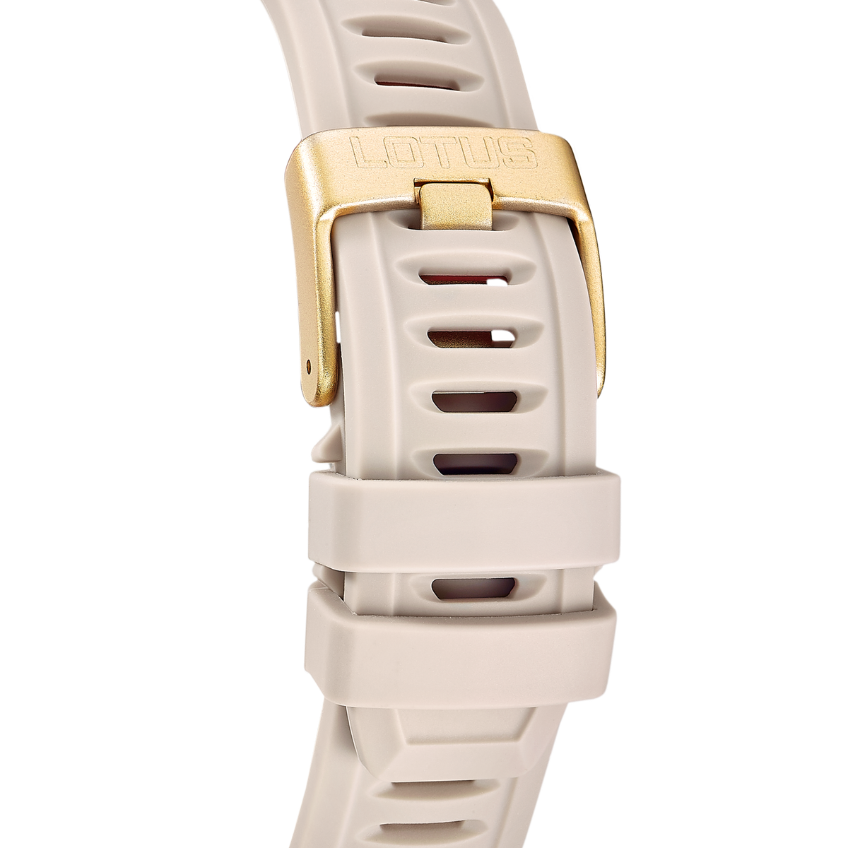 Reloj Lotus Hombre 20001/2 Connected Sport Rosa. Caja de plástico dorado de 45mm de diámetro. Bisel dorado. Correa de silicón rosa. Cierre hebilla. Multifunción, Frecuencia cardíaca, GPS, Historial entrenamiento, monitorización de sueño, condición física (VO2max), estrés, hora mundial, temporizador, cronómetro, alarma, clima, encontrar teléfono, control música, notificaciones. Cristal mineral. Movimiento quartz. Sumergible 50m. 3 años de garantía. Ref 20001/2