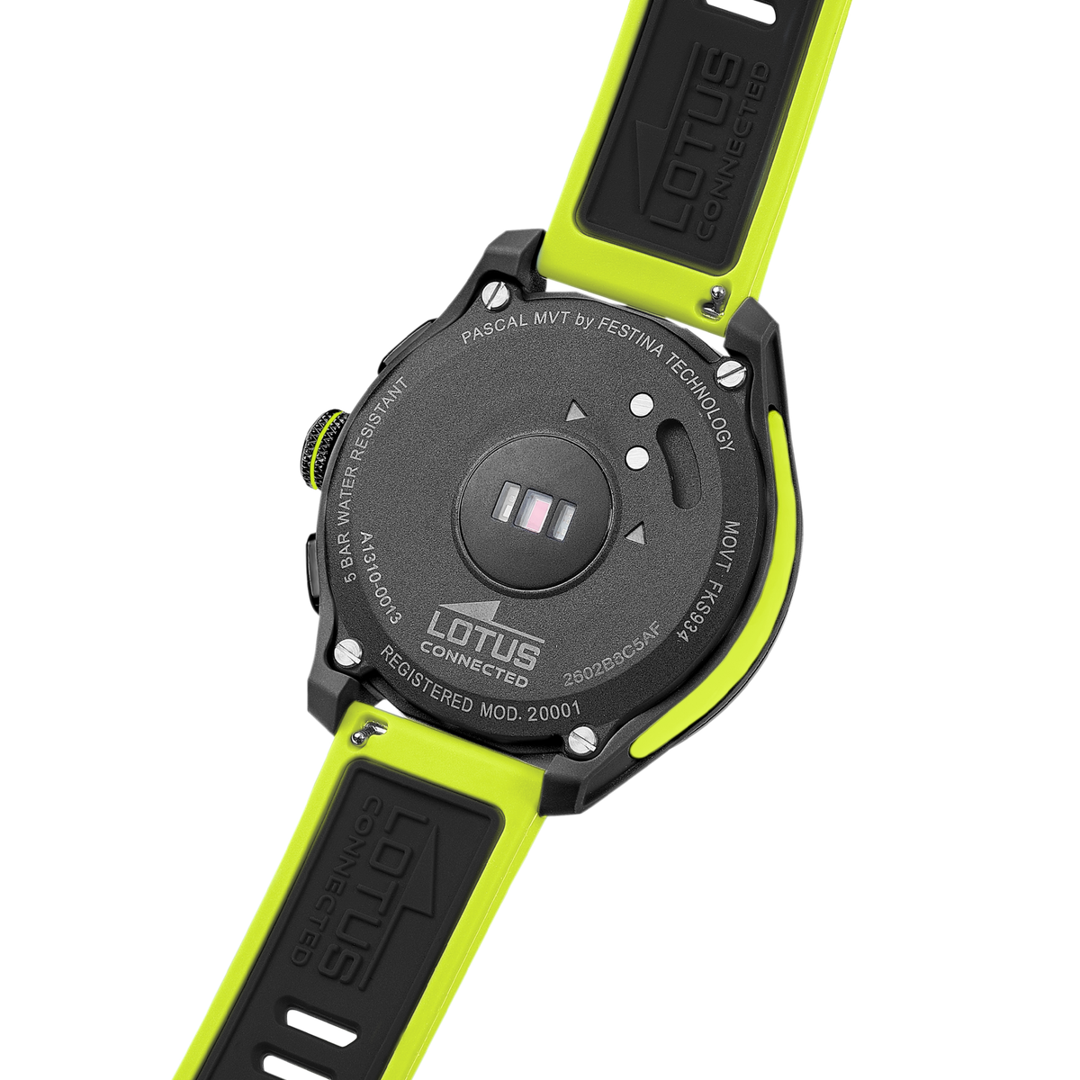 Reloj Lotus Hombre 20001/5 Connected Sport Amarillo. Caja de plástico negro de 45mm de diámetro. Bisel negro. Correa de silicón amarillo. Cierre hebilla. Multifunción, Frecuencia cardíaca, GPS, Historial entrenamiento, monitorización de sueño, condición física (VO2max), estrés, hora mundial, temporizador, cronómetro, alarma, clima, encontrar teléfono, control música, notificaciones. Cristal mineral. Movimiento quartz. Sumergible 50m. 3 años de garantía. Ref 20001/5