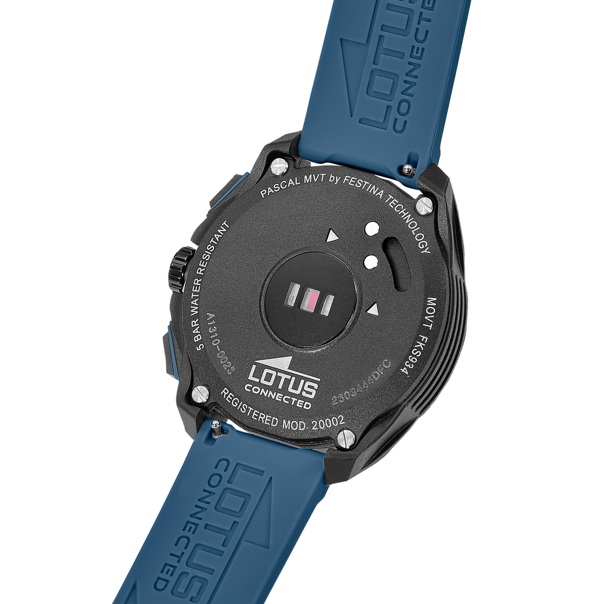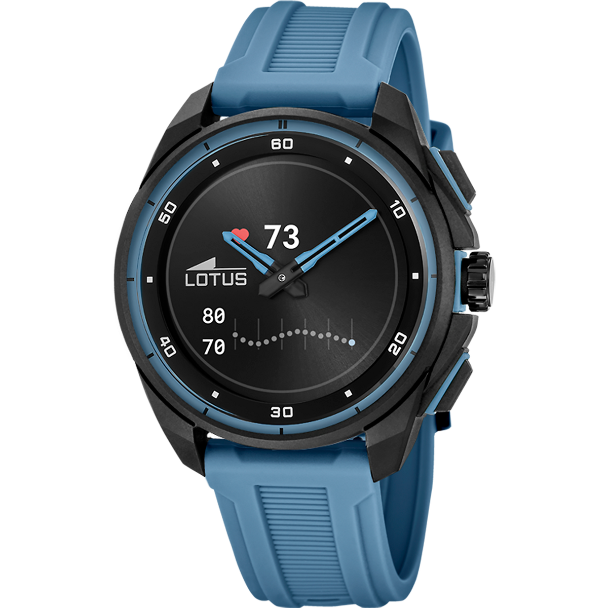 Reloj Lotus Hombre 20002/4 Connected Sport azul. Caja de plástico negro de 42,5mm de diámetro. Bisel negro. Correa de silicón azul. Cierre hebilla. Multifunción, Frecuencia cardíaca, GPS, Historial entrenamiento, monitorización de sueño, condición física (VO2max), estrés, hora mundial, temporizador, cronómetro, alarma, clima, encontrar teléfono, control música, notificaciones. Cristal mineral. Movimiento quartz. Sumergible 50m. 3 años de garantía. Ref 20002/4