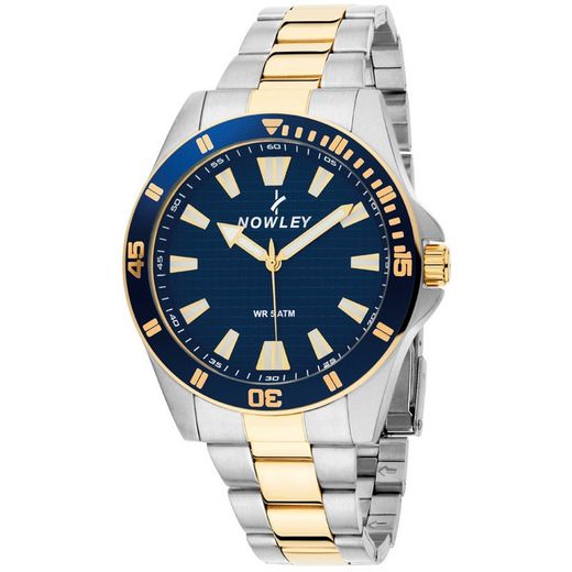 Reloj Nowley Hombre 8-0025-0-2 Bicolor Acero Dorado. Caja de acero 43mm.Brazalete bicolor acero y dorado. Bisel azul y dorado. Esfera azul y agujas doradas. Quartz. Sumergible 50m. 3 años de garantía. Ref. 8-0025-0-2.