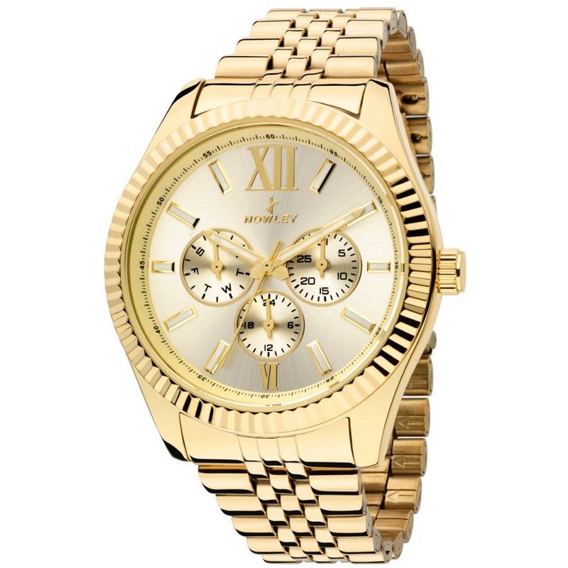 Reloj Nowley Hombre 8-0083-0-1 Acero Dorado. Caja de acero dorada de 44mm. Brazalete de acero dorado. Cierre desplegable. Esfera dorada. Multifunción, calendario. Cristal mineral. Movimiento quartz. Sumergible 50m. 3 años de garantía. Ref 8-0083-0-1