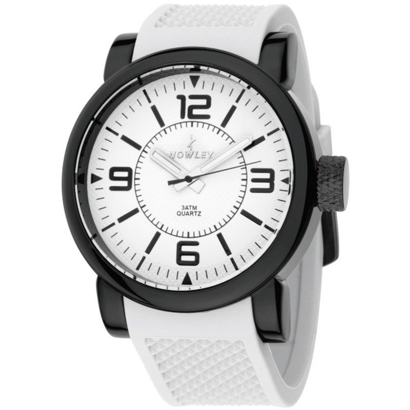 Reloj Nowley Hombre 8-5242-0-1 Sport Blanco. Caja de acero negra de 48mm. Correa de caucho blanco. Cierre hebilla. Esfera blanca. Cristal mineral. Movimiento quartz. Sumergible 30m. 3 años de garantía. Ref 8-5242-0-1