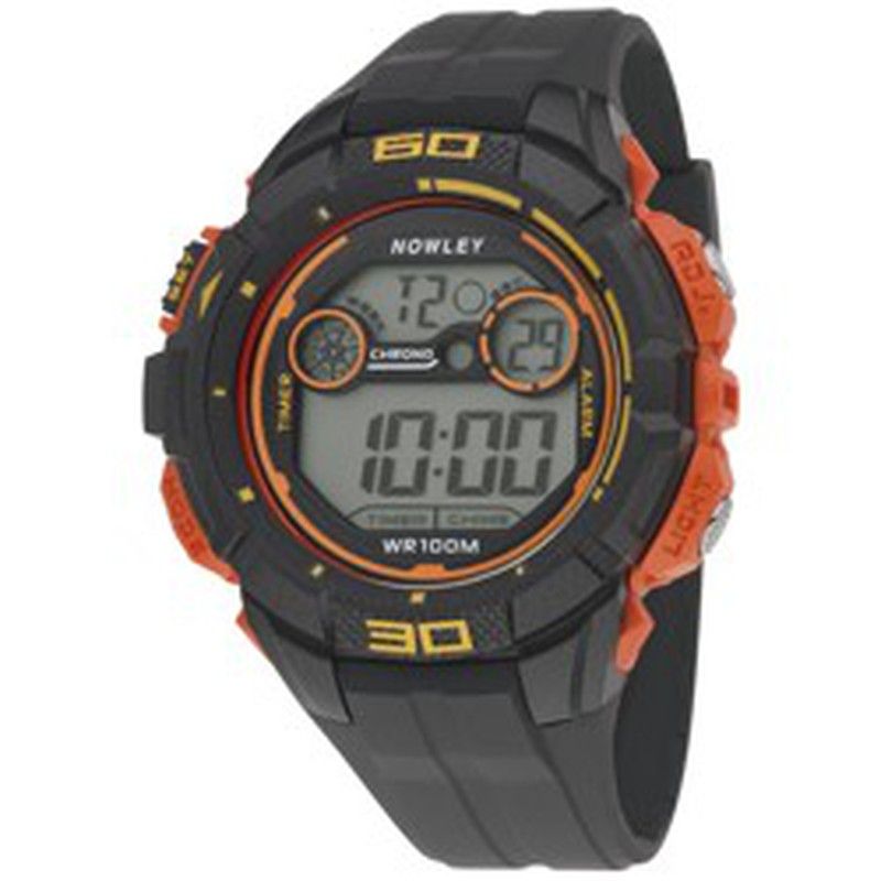 Reloj Nowley Hombre 8-6234-0-2 Sport Negro. Caja de policarbonato negra naranja. Correa de silicona negra. Esfera digital. Multifunción calendario. Alarma. Señal horaria. Cronógrafo. Timer cuenta atrás. Doble horario. Sumergible 100m. 3 años de garantía. Ref. 8-6234-0-2