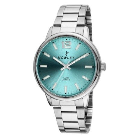 Reloj Nowley Hombre 8-7150-0-8 Acero Analógico. Caja de acero de 42mm de diámetro. Bisel plateado. Brazalete de acero inoxidable plateado. Cierre desplegable con pulsadores. Esfera azul turquesa. Cristal mineral. Movimiento quartz. Sumergible 50m. 3 años de garantía. Ref 8-7150-0-8