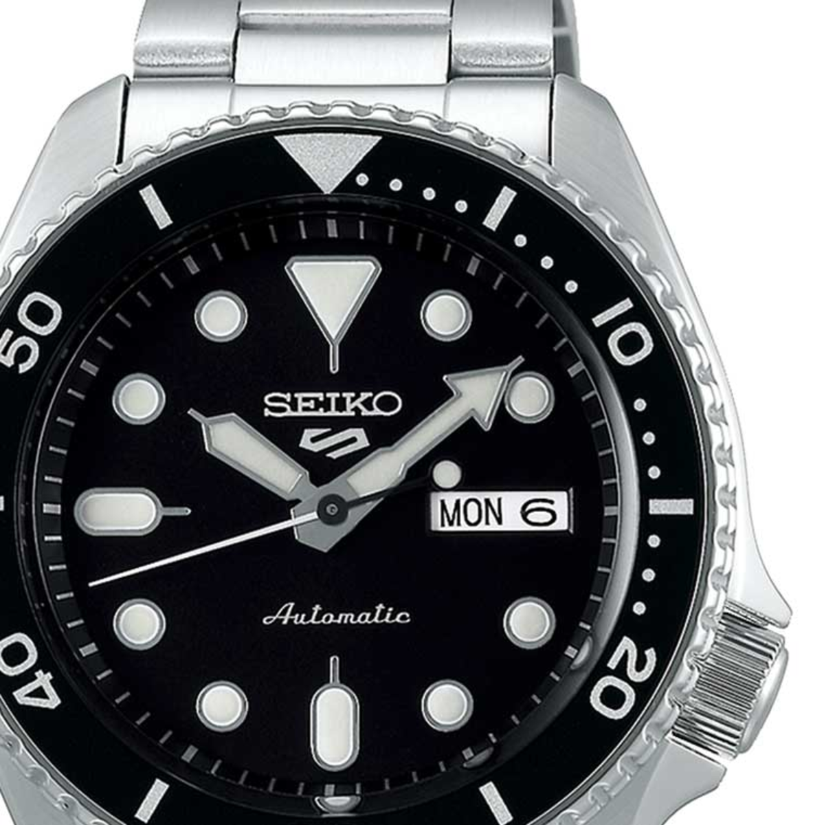 Reloj Seiko Hombre SRPD55K1 5 Sports Automático Sports Acero. Caja de acero de 42.5mm diámetro. Brazalete de acero. Esfera negra. Bisel negro blanco. Calendario. Sumergible 100m. Garantía de 3 años. Ref. SRPD55K1