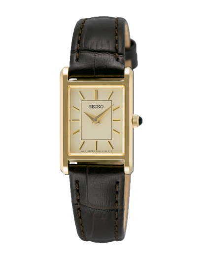 Reloj Seiko Hombre SWR110P1 Neo Classic Piel Negra Acero Dorado Analógico. Caja de acero dorado de 19,6mm de diámetro. Bisel dorado. Correa de piel negra. Cierre hebilla. Esfera dorada. Cristal zafiro. Movimiento quartz. Sumergible 50m. 3 años de garantía. Ref SWR110P1