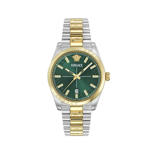 Reloj Versace Hombre VE0G00425 Acero Bicolor Dorado Millenyum. Caja de acero bicolor dorado de 40mm. Brazalete de acero dorado. Cierre desplegable. Esfera verde. Multifunción, calendario. Cristal zafiro. Movimiento quartz Suizo. Sumergible 50m. 3 ańos de garantía. Ref VE0G00425