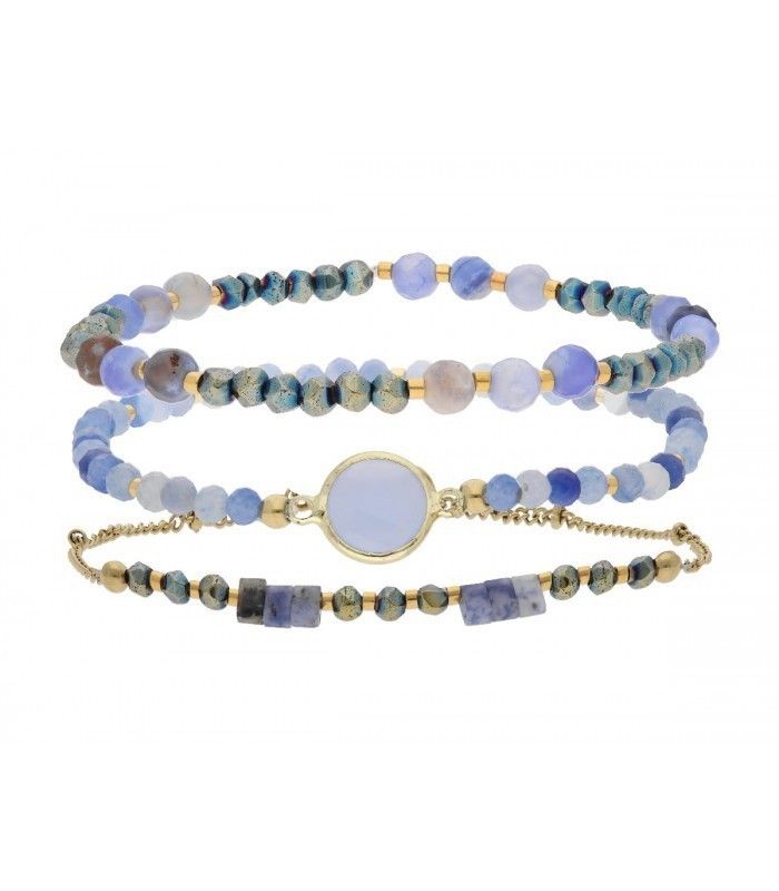Set 3 Pulseras Acero Dorado Liska Mujer SHA182 Piedras Naturales Azules