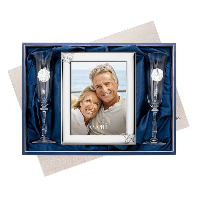 Set Portafotos Copas 18x24cm Aniversario EV9103/03V Alianzas 25 Años. Set de portafotos y copas conmemorativo de 25 años de bodas. Recuerdos de aniversario de bodas. Medidas 18x24cm. Ref EV9103/03V